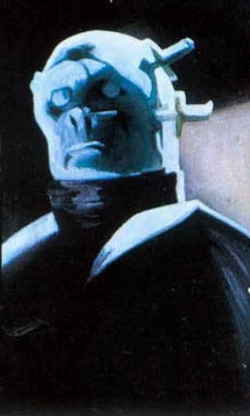 Draleba was a tall cenobite who wore black robes rather than the black leather bound suits that cenobites commonly wore. His face had ridges in it and his eyes were two white orbs. His most distinguishing feature though would be the two knives protruding from his bald head.