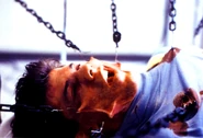 Video tape interviews are recovered from the Channard Institute of one of Pinhead's former victims Kirsty Cotton. Joey and Terri learn through the videos about the demonic Cenobites and the power of the Lament Configuration puzzle box and that it is the only means of sending Pinhead back to Hell. Back at the Boiler Room that night, JP is looking over the night's potential conquests and soon finds a pretty young buxom blonde named Sandy (Aimee Leigh), whom he presents with a rose. He seduces her with his wealth, informing her of his ownership of the club and charms her into submitting to dominant bondage sex which is observed by a still imprisoned Pinhead. JP's triumphant and masculine orgasm (juxtaposed with Sandy's dominated pitiful gasping and whimpering) stirs Pinhead into opening his eyes. Afterwards JP reveals his disdain for his conquest, along with her disposability to him and orders her to leave, which she takes poorly. Whilst in hysterics, she is seized by chains from within the pillar, skinned and consumed screaming. After killing Sandy, her distorted face appears on the pillar as her body and soul now form part of it. Pinhead convinces Monroe that there was no difference in their respective use and enjoyment of Sandy's flesh and body and for JP to bring him more club members so he can feed on them and be freed from the pillar.